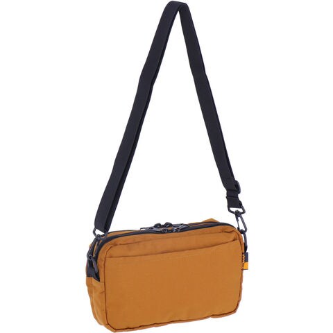 2列のジップポケットが珍しいショルダーポーチです.1つ1つの収納は大きくありませんが、たくさん収納場所があるので、小分けが非常に楽です.表面にはファスナーポケットが付いており、すぐに取り出したい物を入れておくと便利です.1列目のジップポケットには2つ分けの仕切りが付いています.2列目のジップポケットは何もなしのシンプルな収納です.背面にはマジックテープで止めるスリーブが付いています.