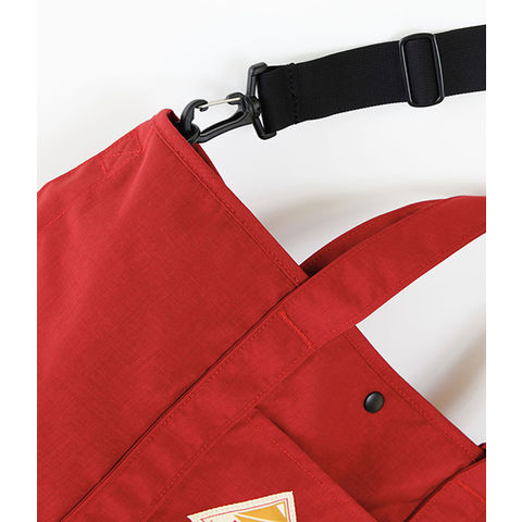 仕様:収納抜群なポケットがたくさん(内側に5つ、外側の両面にそれぞれポケットがある).ショルダーストラップ取り外し可能.スナップボタンとめ.引き裂き強度・耐摩耗性に優れ、裏側にポリウレタンコーティングを施したナイロンを使用.生地の裏が見えないように裏地が付いている.内側の色味は同色.