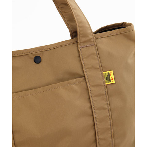 ブランドネームを前面には出さず、象徴とも言えるイエロータグをピスネームとして使用したシンプルなデザインが特徴の新たな80Sライン.コーデュラ420デニールのエコナイロンを生地に使用し、定番でもロングセラー商品のナイロントートSをリリース.内側には4つの小さなスリーブポケットと、ファスナーポケット.外側にも両面にスリーブポケットが付いているので、収納力抜群です.ショルダーストラップはシーンに合わせて取り外し可能です.