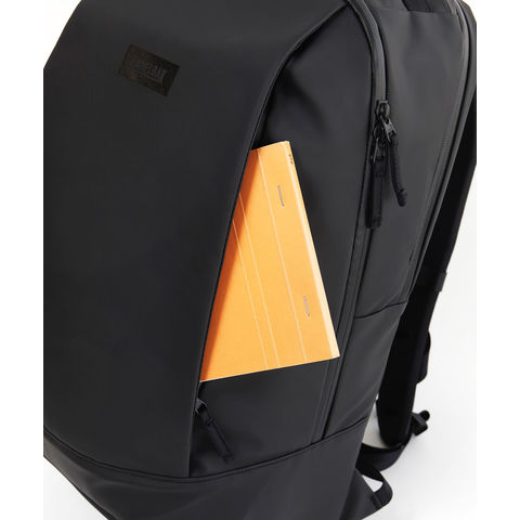 CAMELBAKの代名詞であるハイドレーション(水分補給)のためのボトルホルダーをメインルームに装備した25リッターのビジネス対応バックパック.メイン素材の耐水性を活かして全て止水ファスナーを使用.あなたの大切なビジネスアイテムを雨から守ります.メインルームには書類など入る大きめポケットの他、小分けに配置されたメッシュのファスナーポケットで、スマホや充電器など、あなたのガジェット類の位置がすぐに分かります.トップにはICカード入れや名刺入れなど、すぐに取り出したい物用のポケットがあって便利です.背面側には15インチサイズ対応で、柔らかいトリコット素材のPCルームを完備しています.