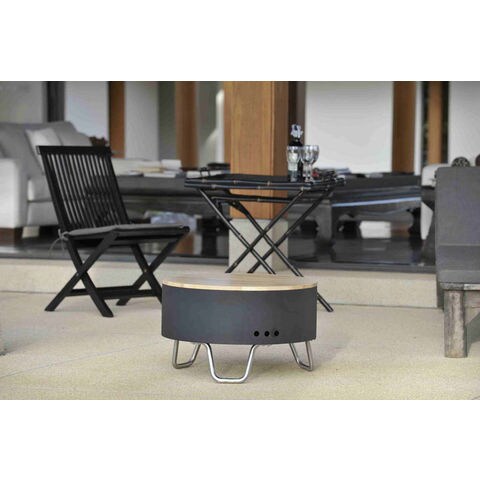 ファイヤーピットはもちろん、BBQ、サイドテーブルにも!付属のグリルやオプションのパエリアパンも使えます.バンブーテーブル付属で、テーブルとしても.