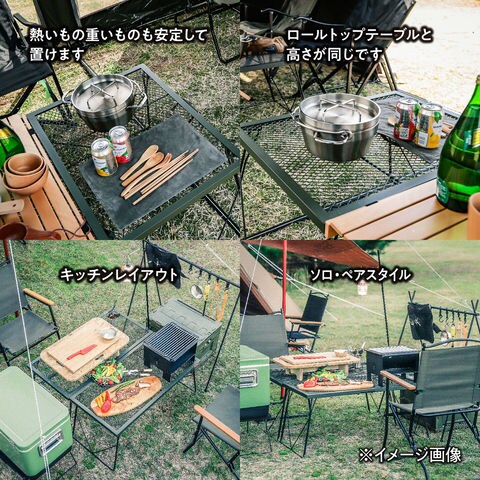 仕様:耐熱性に優れたスチール製のテーブル.溶接加工された重厚な作りがクラシック・アウトドアの雰囲気に.
