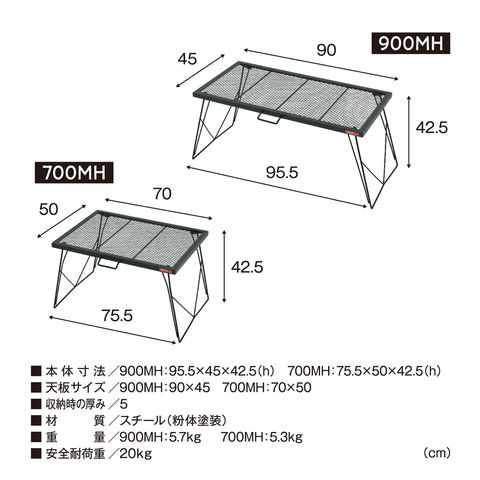 開拓時代のスピリットを受け継いで.1台1台手づくり加工したハードメッシュ仕様が信頼のクオリティ、[スチールワークス]テーブルシリーズ.アメリカの西部開拓時代に愛用されたファイアーテーブルのイメージを元に開発されました.耐熱性に優れたスチール製、重厚感がある作りで地面にしっかりと置け、安定感のあるテーブル.MHはミドルハイの高さで他のテーブルとも兼用しやすいサイズ感.(パテント登録済)