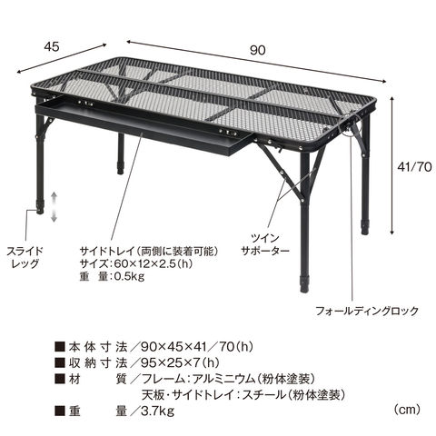素材:フレーム / アルミニウム ( 粉体塗装 ) 、天板・トレイ / スチール ( 粉体塗装 )