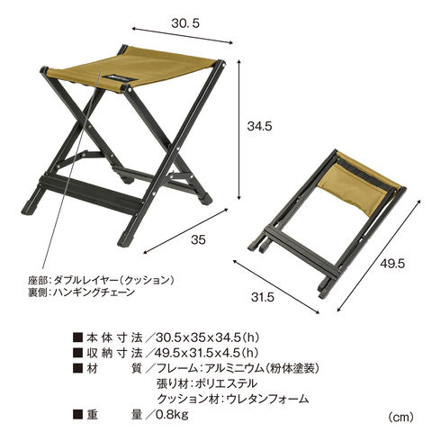 トラッド ( 伝統的 ) なスツールを現代的にリモデル.安定感のある座り心地でアウトドアに最適なスツール.立ち座りがしやすいシート高 33CM 、ミドルハイスタイルに最適.チェアと組み合わせたオットマンとしても、クーラーボックスや道具置きとしても活用可能.
