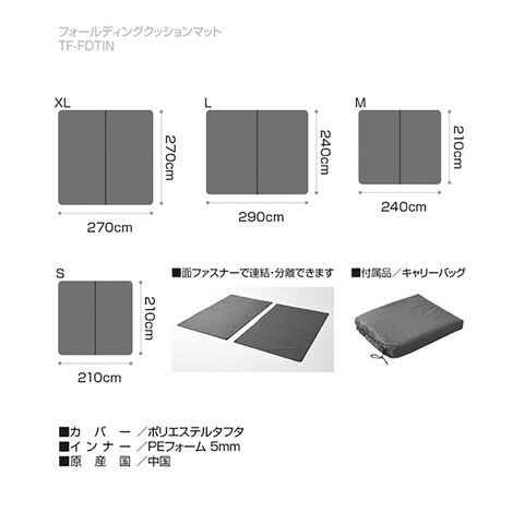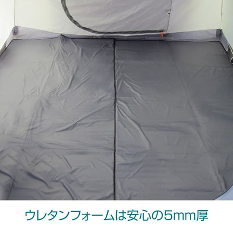 テント内の居心地を快適にする クッションタイプの折り畳み式マット.面ファスナーで連結・分離.テントに合わせてレイアウトしたり、重ねて厚みを調整できます.厚みのある 5MM クッションは、地面の凹凸や冷気を和らげます.