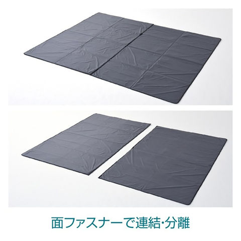 【地面の凹凸や冷気を緩和し、テントのフロアをより快適に】長角 2 枚を面ファスナーで連結して使用します.アウターシートは強度・耐久性に優れ、摩耗にも強いポリエステルタフタ織.インナークッションは、地面の凸凹・冷気を緩和し、また収納時にかさばりすぎない、バランスのとれた適度な 5MM 厚.