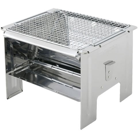 【少ない燃料でも輻射熱で効率よく加熱できる 「V 字構造 」 のグリル =V グリル】上質な光沢感のあるステンレススチール製で、サビへの耐久性能が高い.折りたたみ式 ( フォールディング ) で、洗浄・お手入れがしやすい.軽量でコンパクトに収納、専用キャリーバッグも付いているので持ち運び・保管も便利.