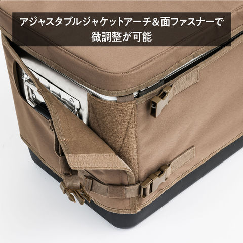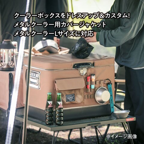 クーラーボックスをドレスアップ & カスタム!テントファクトリーのメタルクーラー用カバージャケット.直射日光除けや運搬の際のクッションとしても役立ちます.スタイリッシュで機能的、アウトドアで映えるオリジナルデザイン.市販のメタルクーラーボックスにも微調整で取付可能です.