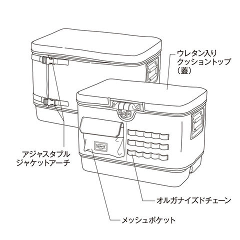 仕様:風合いも良く強度の高い TFOX( オックスフォード織 ) を採用.蓋カバーはウレタン入りのクッショントップ. 51L クーラー用の L サイズ.
