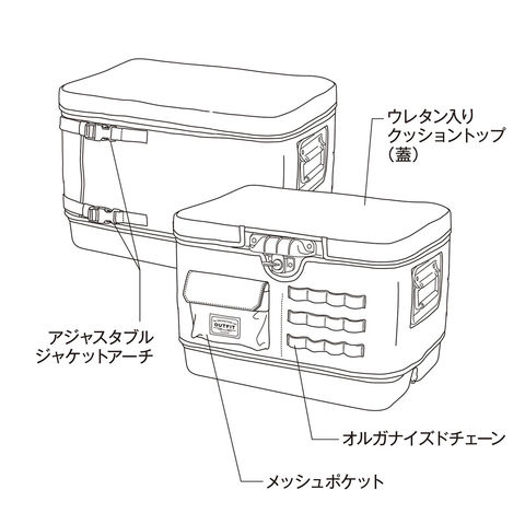 仕様:風合いも良く強度の高い TFOX( オックスフォード織 ) を採用.蓋カバーはウレタン入りのクッショントップ. 29L クーラー用の M サイズ.