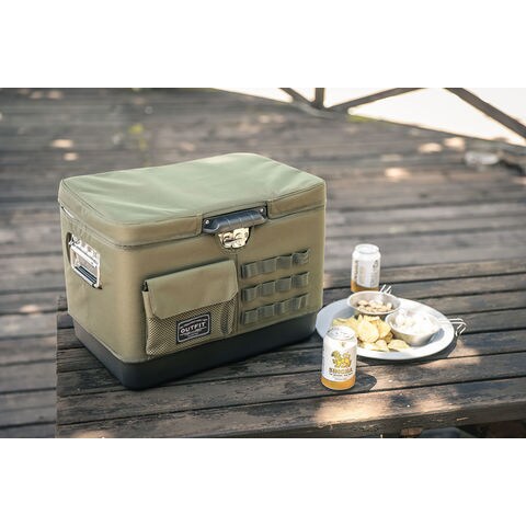 クーラーボックスをドレスアップ & カスタム!テントファクトリーのメタルクーラー用カバージャケット.直射日光除けや運搬の際のクッションとしても役立ちます.スタイリッシュで機能的、アウトドアで映えるオリジナルデザイン.市販のメタルクーラーボックスにも微調整で取付可能です.