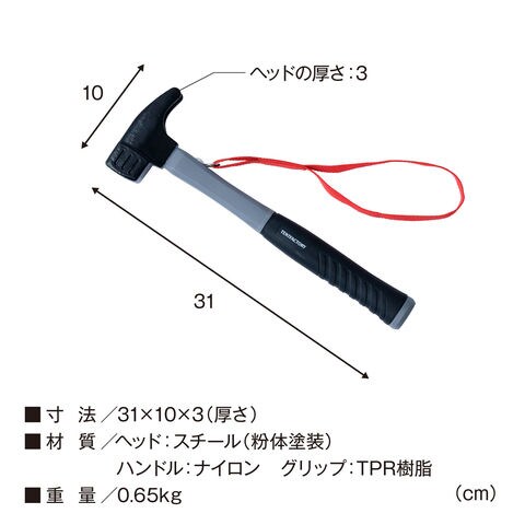 柄は折れにくく錆びないナイロン素材.グリップは汗で滑りづらい TPR 樹脂素材を採用.ヘッドと柄の重量バランスがよく、少ない力でも強く打ち込めて使いやすい.