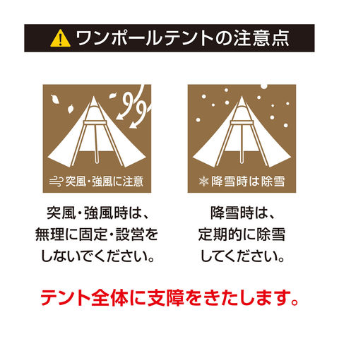 ※風が強い時期は、無理に固定を強くすると、逆にテント下からの上昇気流による負荷から、生地(縫製箇所)が破損する場合があります.こういった場合は逆に風抜けをよくするか、速やかに撤収してください.