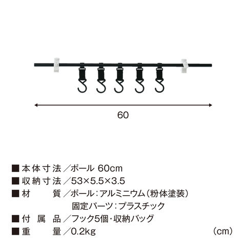 サイズ:ポール長/60cm、収納サイズ/53×5.5×3.5cm