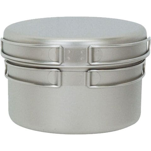 チタン製の深型鍋とフライパンのセット.ネットケース付きです.