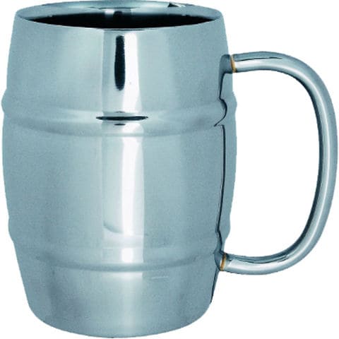 耐久性の良い、樽型形状のステンレス製マグカップ.