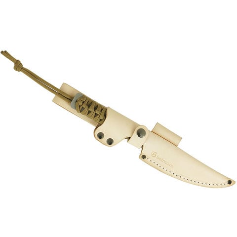 硬さ、耐摩耗性に優れた高強度のステンレス鋼(SUS6A)を使用.約90gと超軽量かつ力の入りやすいフルタングブレードを採用し、バトニングや調理など幅広く使用できる形状に設計しています.シースは経年変化が楽しめる牛のヌメ革を使用し、サイド部分のループ(10mm)には[別売]ファイアスターター(10mm)の取り付けが可能です.