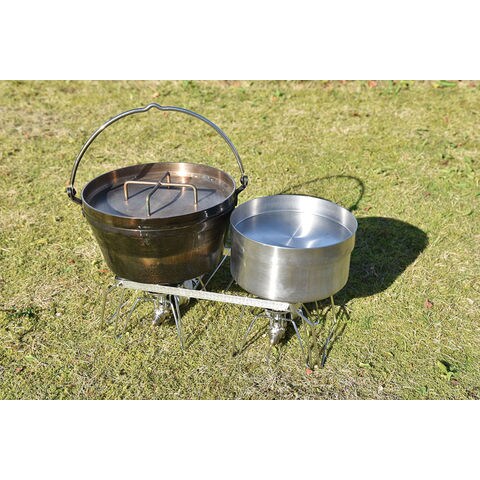 丈夫なオールステンレス製の五徳シリーズ.大きな鍋をかけても安心な強度と耐久性がありながら、脚を折りたたんでコンパクトに収納できます.脚を取り外してかまどの五徳として使ったり、焚き火台の上にのせて大きな鍋で調理ができます.