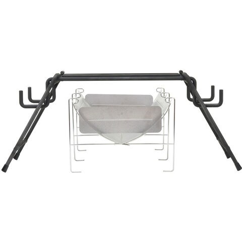 アイアン焚き火スタンドのミニサイズ登場.ウッドストーブや小型の焚き火台にジャストサイズ.脚をセットする位置を変えるだけでお使いの焚き火台に合った高さに変えることができます.