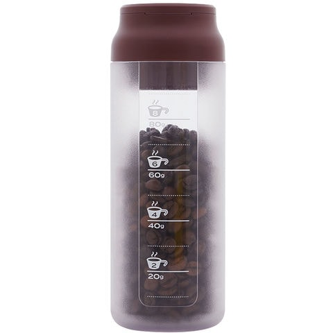 二振りすれば一杯分(10g)のコーヒー豆が計量できるコーヒーキャニスターです.約9杯分のコーヒー豆を持ち運びできます.上部のスライドキャップの内側に計量部分があり、一振りで1/2杯分の豆が溜まります.
