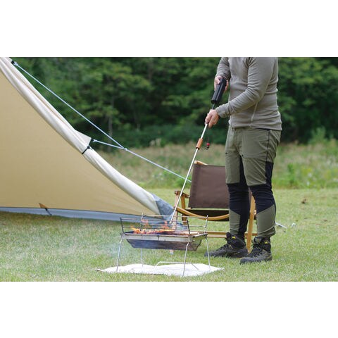 残り少なくなったたき火や炭火、弱くなった炎を蘇らせる[火吹き棒]にポンプが付属.ポンプを取り付けてスライドさせることにより口よりも強い風を送ることができます.ポンプを使わず口で吹く使い方もできます.