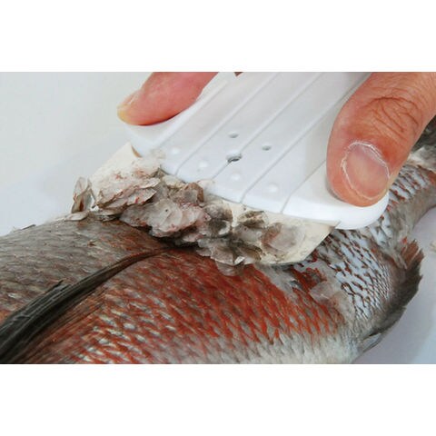 刃部分を魚に沿わせるように湾曲させ、削ぎ取るようにうろこを剥がします.