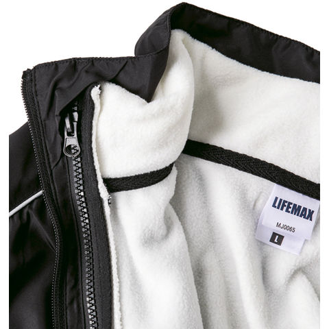 暖かく快適な着心地をキープ.高密度タフタ素材で透湿性、撥水性、防風性に優れたジャケットです.フリースジャケット(別売り MJ0065)をファスナーで組み合わせることができ、保温性抜群の防寒着に早変わりします.