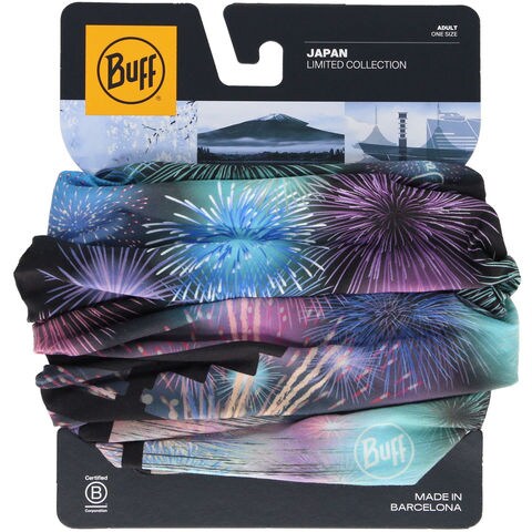 日本限定モデル[花火].日本の伝統、花火をモチーフにスペイン人のデザイナースタッフがデザインしました.表裏面を少しスライドさせると、鳥居が浮き上がります. BUFF のロゴも光ってますよ!通年通して使える多機能商品です.
