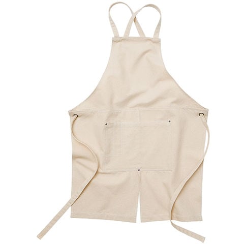 ヘヴィーな生地と実用性をそなえたワークエプロン.フロントスリットを配置することにより引っかかりを軽減.しゃがみやすいため、キッチンからガーデニングと幅広いワークウェアとしても利用可能.ペン差し付きの大振りのポケット付きのため実用性も抜群.また、マットシルバーのリベットやアイレットのギミックが頑丈さとオーセンティックさを表現しています.