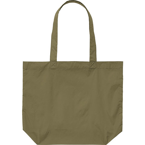 ナイロンのリップストップ生地でつくられた軽量で丈夫なトートバッグ.裏地にアクリルコーティングを施すことで、耐久性をアップ.ミニマルなデザインで、スタイルを選ばずどんな装いにもマッチする万能アイテムに仕上げました.カラーはブラックやネイビーといった定番色だけでなく、ミリタリーやアウトドアカラーも用意.折りたたんでしまっておいて、いざというときのサブバッグとしても活躍します.サステナブルを気にする時代にぴったりなバッグをぜひ相棒にいかがでしょうか.