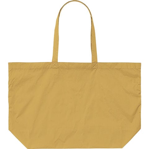 ナイロンのリップストップ生地でつくられた軽量で丈夫なトートバッグ.裏地にアクリルコーティングを施すことで、耐久性をアップ.ミニマルなデザインで、スタイルを選ばずどんな装いにもマッチする万能アイテムに仕上げました.カラーはブラックやネイビーといった定番色だけでなく、ミリタリーやアウトドアカラーも用意.折りたたんでしまっておいて、いざというときのサブバッグとしても活躍します.サステナブルを気にする時代にぴったりなバッグをぜひ相棒にいかがでしょうか.