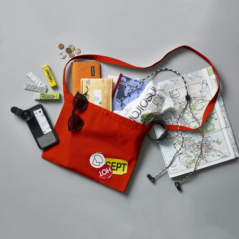 280g/m2のレギュラーキャンパス生地を使用したサコッシュ.買い物や自転車に乗る時にもキャンプの時または旅行にもとても便利です.マチがなくシンプルな袋状で、普段持ち歩く小物などを入れるのに丁度良いサイズです.