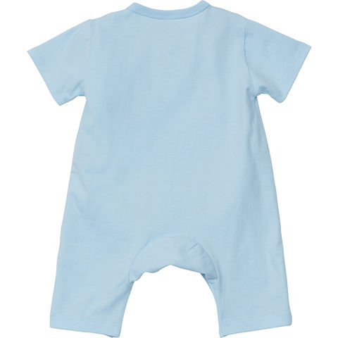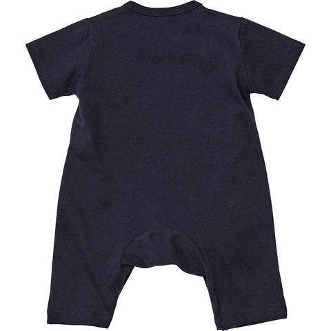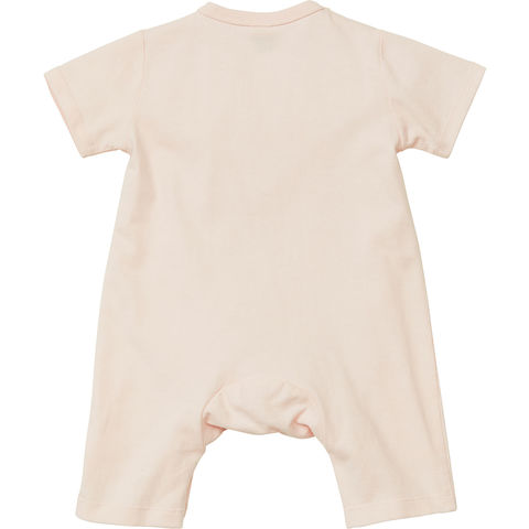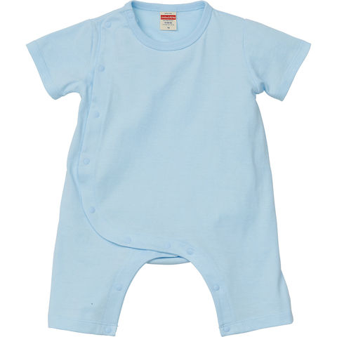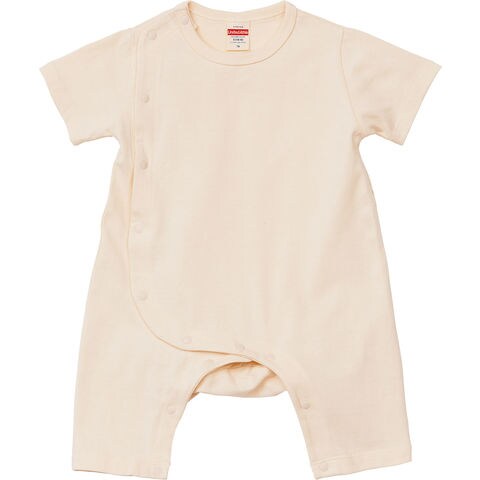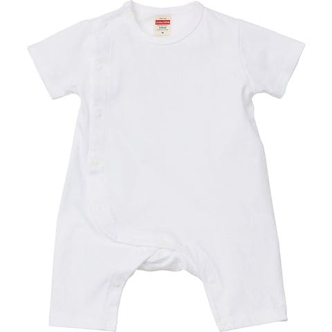 生地選びからボタンの位置まで赤ちゃんのための工夫がとことん光る.赤ちゃんのために考え抜かれたカバーオール.スナップボタンをサイドに逃がしたデザインは、腹ばいになって動きまわる赤ちゃんのお腹にストレスをあたえないほか、可愛いプリントを大きく打てるのも大きな魅力.前側はスナップボタンで全開するので、お着替えやオムツ替えも簡単.股下のボタンは 1 か所だけが色違い、お着替えのときのボタンのかけ間違いを防ぎます.生地には 5.6 オンスの綿 100% 天竺を採用.不純物の除去や綿花の選定などにこだわることで毛羽立ちを抑え、やわらかなやさしい肌ざわりを実現.また、同じ生地の STYLE NO. 5001 シリーズとあわせて、親子やきょうだいでリンクコーデを