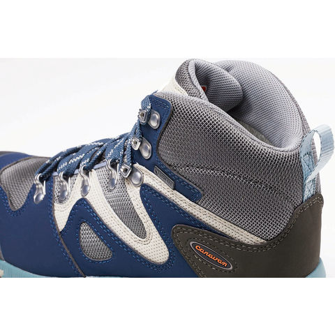 女性ユーザーの声を反映し、より履きやすく進化させたレディスモデルです.履き口にはソフトなメッシュ生地を使い、裏生地やクッション材にもこだわって、繊細な女性の足に優しい柔らかさを追求しました.ラストはスリム型のレディスラストを採用.履き口も細めにしてフィット感を高めています.脚力の弱い女性でも負担が少ない自然なソールの屈曲性が得られるよう、インソールボードには歩行サポートする屈曲ラインスタビライザーを施しました.インソールはシューズ内の蒸れ感を軽減する高通気性素材にするなど、細部まで女性の使いやすさに配慮しています.さらに、ウェアとコーディネートできるよう別色のシューレースが付属しています.
