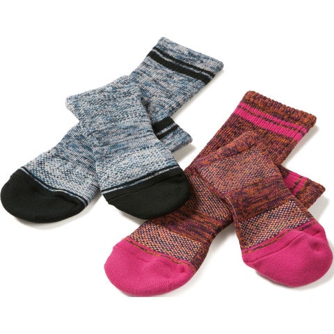 RLドラロン・マダラックスと同じ吸汗速乾・抗菌防臭生地を使い、RLソックスの良さを活かして子供用に仕立てた高機能ソックスです.指先からかかと、足首まわりまでは、クッション性のある中厚のパイル編み、履き口はルーズフィット構造なので締め付け感がなく、長時間の着用も快適です.子供にも右足用・左足用がわかりやすいように、小学校1年生が習う漢字の[右]と[左]の1文字で表示しました.