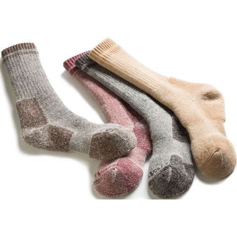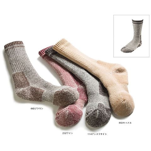 [メリノウール・2Pソックス]をベースにした、単体販売のNEWモデル.履き心地の良さと耐久性をそのままに、かかとから履き口までの丈をより長くし、履き口まわりにアクセントラインをあしらいました.裏面をパイル編みにした厚手の生地はクッション性が抜群.表面は微起毛感があり、メリノウールならではの優しい風合いをお楽しみいただけます.