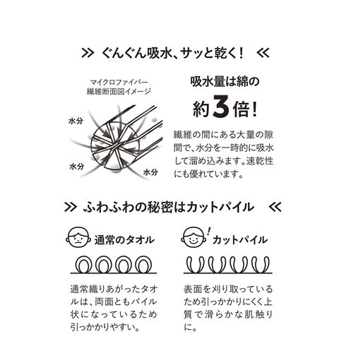 吸水・速乾のマイクロファイバーで出来ているので、お風呂上りに被るだけでしっかり吸水.ドライヤーの時間短縮、湯冷め防止に.プールの後にも、大人も使えます.親子・兄弟でお揃いにするのもおすすめです.