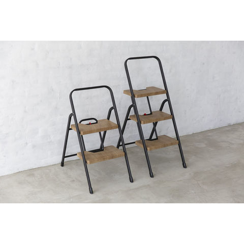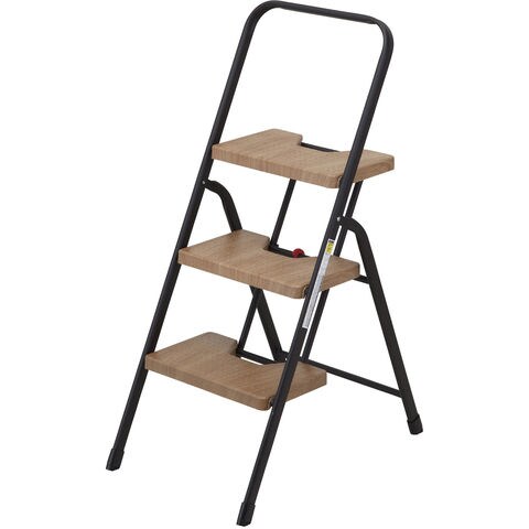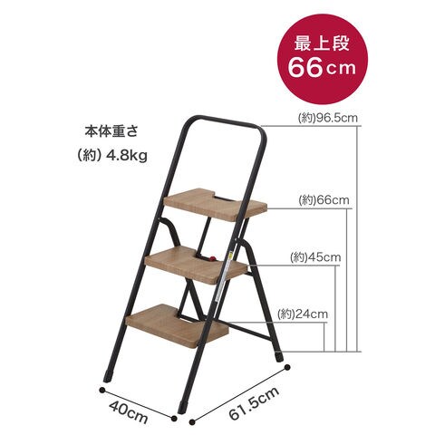 脚立として使わない時は、キッチンでの調理中にちょっと座れる椅子に早変わり.3段タイプは重量4.8kgと見た目以上に軽量なので女性でも簡単に持ち運びが可能です.床面を傷つけにくい脚キャップ付きで使用時にぐらつくことなく安心で、傷から大切な床を守ります.