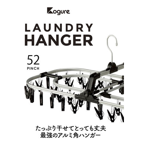 コグレ Kogure アルミジャンボ角ハンガー52 ブラック 洗濯もの干し 洗濯ばさみ 丈夫 自立フック かけやすい 絡みにくい 折りたたみ 収納 洗濯 ランドリー 日常 生活 663218