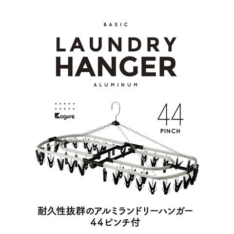 コグレ Kogure アルミ角ハンガー44 ブラック 洗濯物 洗濯 ハンガー 洗濯物干し リブ付き アルミフレーム 金属製リング 隠し干し 山折り式 44ピンチ 軽量 ランドリー 663225