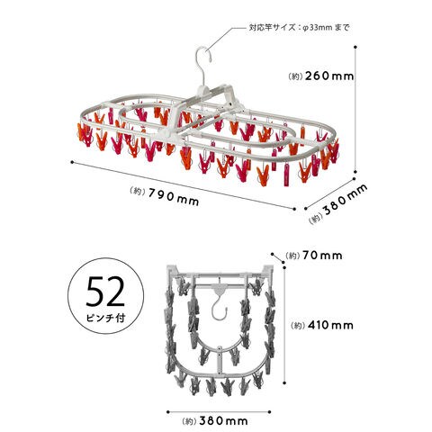 コグレ Kogure アルミジャンボ角ハンガー52 ピンク&オレンジ 洗濯物 洗濯 ハンガー 洗濯物干し 回転 隠し干し 二重フレーム からみにくい 金属製 ピンチ取替可 谷折り式 669487