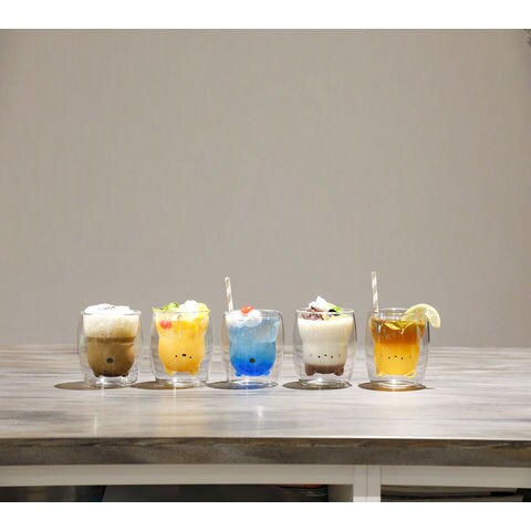 飲み物を注いで楽しむ耐熱アニマルグラス.飲み物を入れると動物がはっきり現れる2層構造.表面に水滴がつきにくく、テーブルを濡らしません.電子レンジでも使えるのでホットドリンクも楽しめる.ゼリーやプリンなどデザートグラスとして使うのもオススメ.いつもの飲み物を注ぐだけで映えるドリンクに!電子レンジOK!熱湯OK!食器洗浄器OK!オリジナル5レシピ付き.