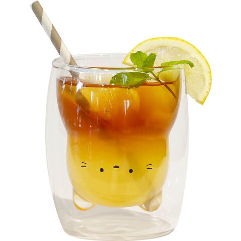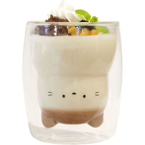 ユーシーエー uca 耐熱アニマルダブルグラス ネコ 2層構造 電子レンジ対応 デザートグラス ドリンク ゼリー プリン インスタ映え 熱湯 食器洗浄機 食洗器対応 レシピ付き 863786