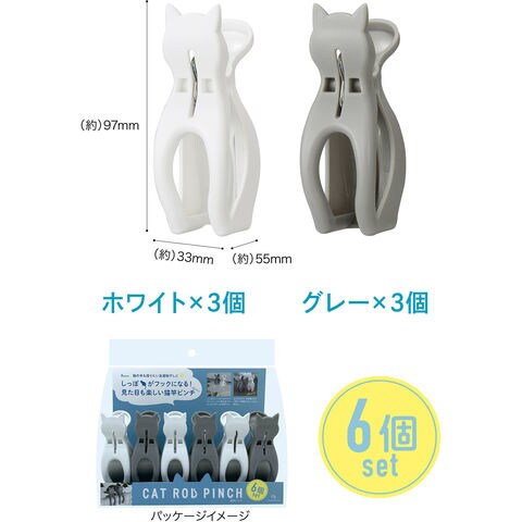 コグレ Kogure 猫竿ピンチ 6個入 ホワイト グレー 猫 しっぽ付き フック付き 洗濯 洗濯物 家事 クリップ ピンチ 洗濯物干し 外干し 室内干し 部屋干し 865940