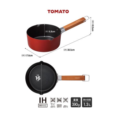 コパン copan IH対応ちょこっとミルクパン16cmトマト 片手鍋 調理器具 クッカー ミニサイズ 小型 コンパクト 両側注ぎ口 料理 クッキング 時短 キッチン 朝食 軽食 868538
