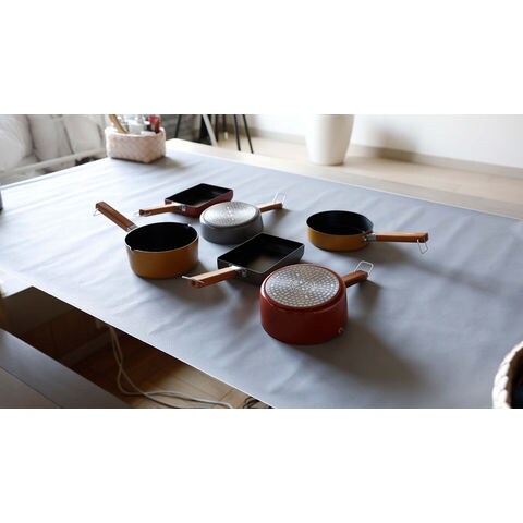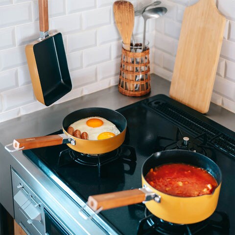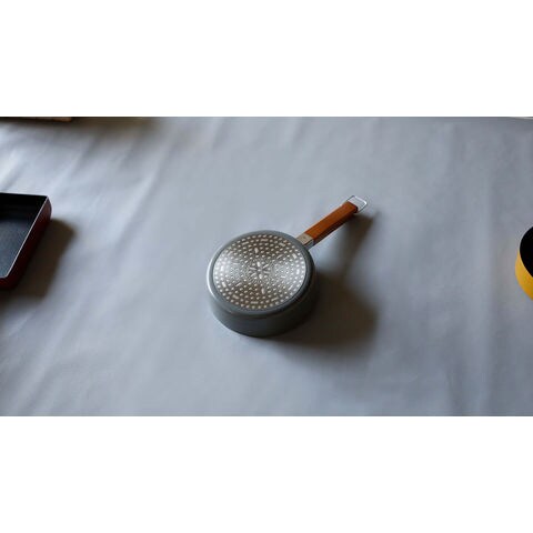 スープをサッと作るのにちょうどいい、IH対応ちょこっとミニミルクパン16cm.食材を煮込むときやスープをかき混ぜるときも、程良い深さがあるのでこぼれにくい.左右に注ぎ口が付いているので、向きを気にせず注ぐことが出来ます.熱伝導率が良く、すぐに煮込めるので、あと一品スープを足したいときにもオススメです.内面はふっ素加工なので、柔らかいスポンジと中性洗剤で洗い流すだけ.汚れが付きにくく落ちやすい.軽量で扱いやすいので疲れにくいのも特徴.シンプルで飽きのこないデザインで、ちょこっとシェフ気分が味わえます.吊るして収納できるので、気軽に毎日の料理をもっと楽しみましょう.