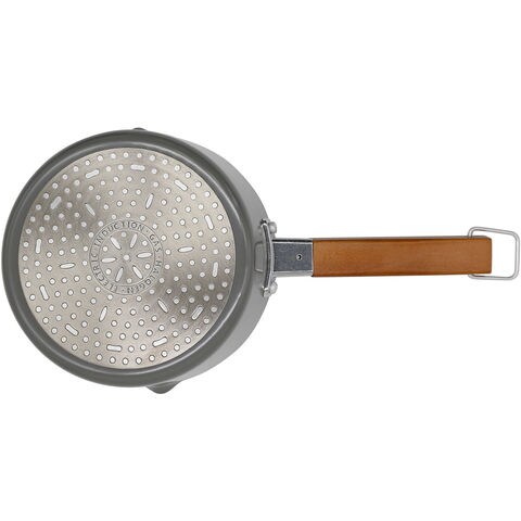 素材:[主素材]本体/アルミニウム合金、底面/ステンレス鋼、持ち手/天然木、[表面加工]内面/ふっ素樹脂塗膜加工、外面/焼付塗装