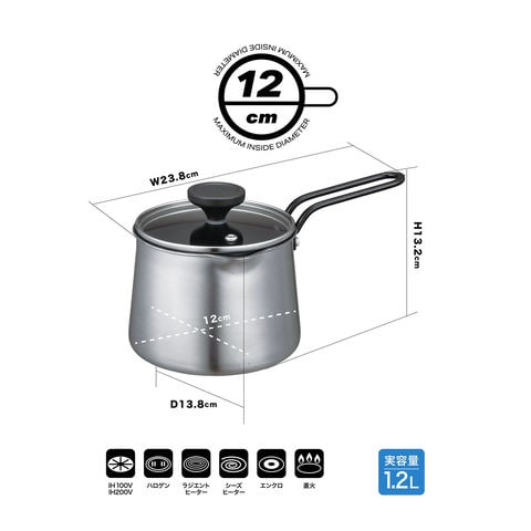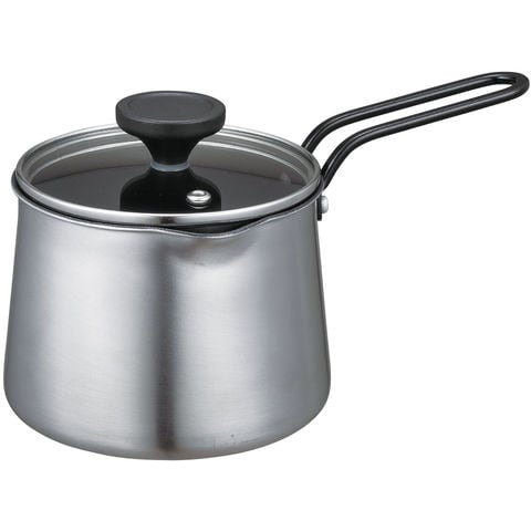 煮る・茹でる・揚げる・炒める・お米が炊ける.これ1つで8役こなす[二層鋼多用途ミルクパン1.25L].中身が見やすいガラス蓋なので、蓋を開けずに調理具合を確認することができます.広口の注ぎ口なので、シチューやカレーなどの具材があるスープでも、ご飯やお皿に盛り付けやすいです.焼きムラが少なく保温効果があるアルミニウムとステンレスの2層構造.アルミニウムは熱伝導性が高く、ステンレス層の熱を均一にフライパン全体へ伝え、食材を包み込むように加熱します.汚れが付きにくく洗いやすい[内面ふっ素コーティング]撥水/撥油性・防汚性に優れているので、調理後のお手入れがラクに出来ます.持ち手は、使用しないときフックに引っ掛けやすい形状.