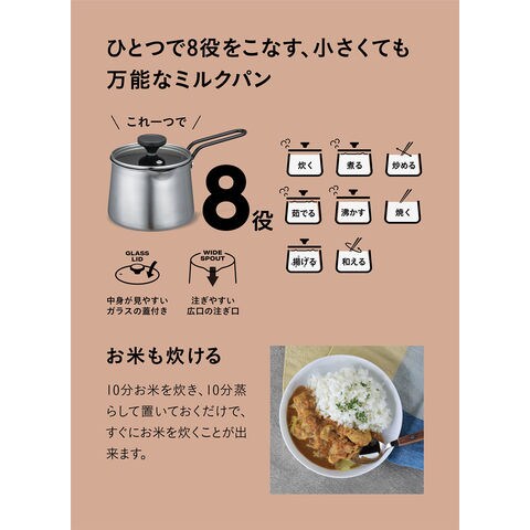 特徴:ひとつで8役をこなす、小さくても万能なミルクパン.